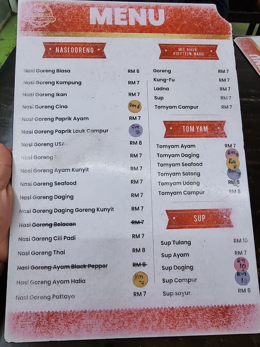 The menu offers a variety of Thai dishes and beverages typical of a Thai restaurant. It includes a selection of main courses characterized by flavorful, spicy, and aromatic preparations common to the region. Drink options feature fruit juices and other refreshing beverages known for their stronger taste and balanced pricing, as noted by customers.